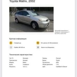 Toyota Matrix 1.8 AT, 2002, 300 000 км