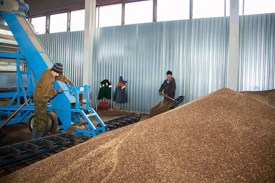 Сначала рапс очищают от грубого мусора. Далее без дополнительного нагрева сырье поступает в маслопресс, там оно отжимается. После этого масло отправляется на последующую фильтрацию. Производство безотходное – весь полученный жмых используется для создания комбикормов для домашнего скота. На данный момент на производстве функционируют три пресса, в день через каждый пропускается около 12 тонн рапса. Предприятие работает круглосуточно. Производство планируется расширять и дальше, создавать новые виды масел, также сейчас здесь проводят работы по оборудованию склада.