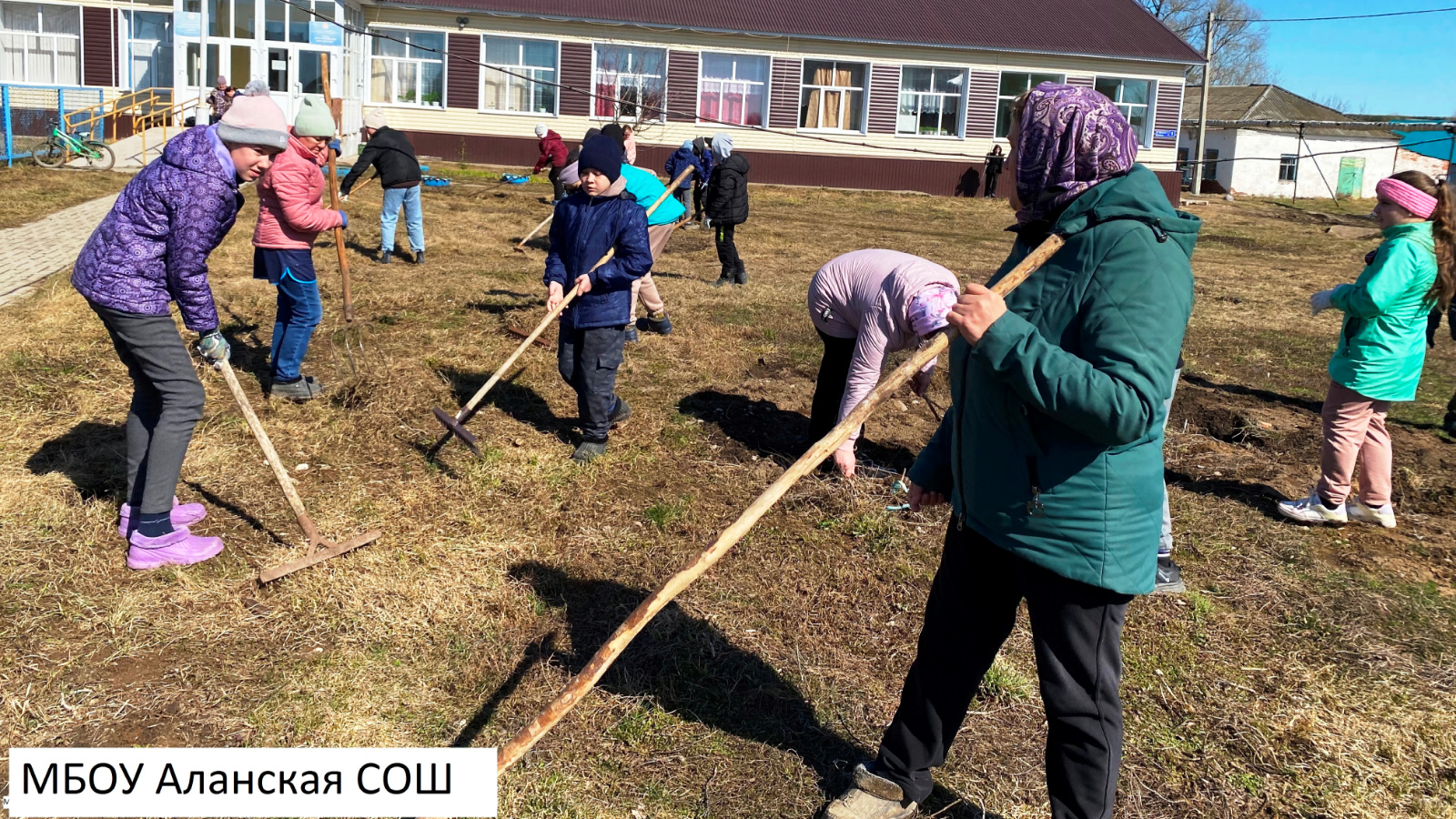 8 апреля 2023 года коллектив и учащиеся Аланской школы вышли прибраться на школьном дворе.