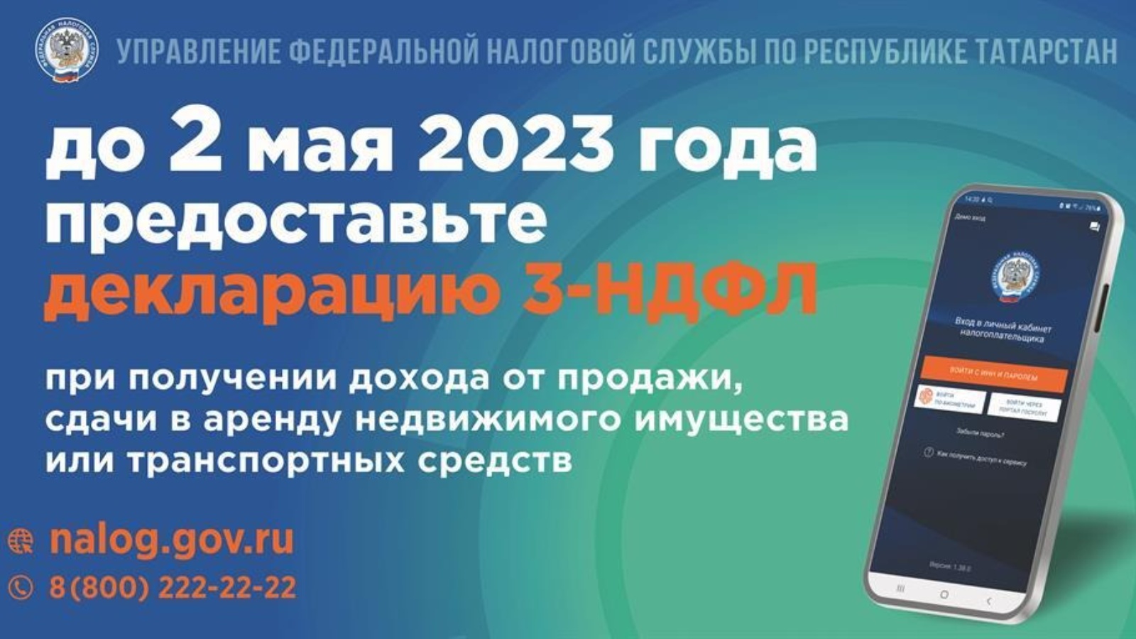 УФНС России по Республике Татарстан напоминает, что предельный срок подачи декларации 2 мая 2023 года не распространяется на получение налоговых вычетов. Такие декларации можно представить в любое время в течение года.