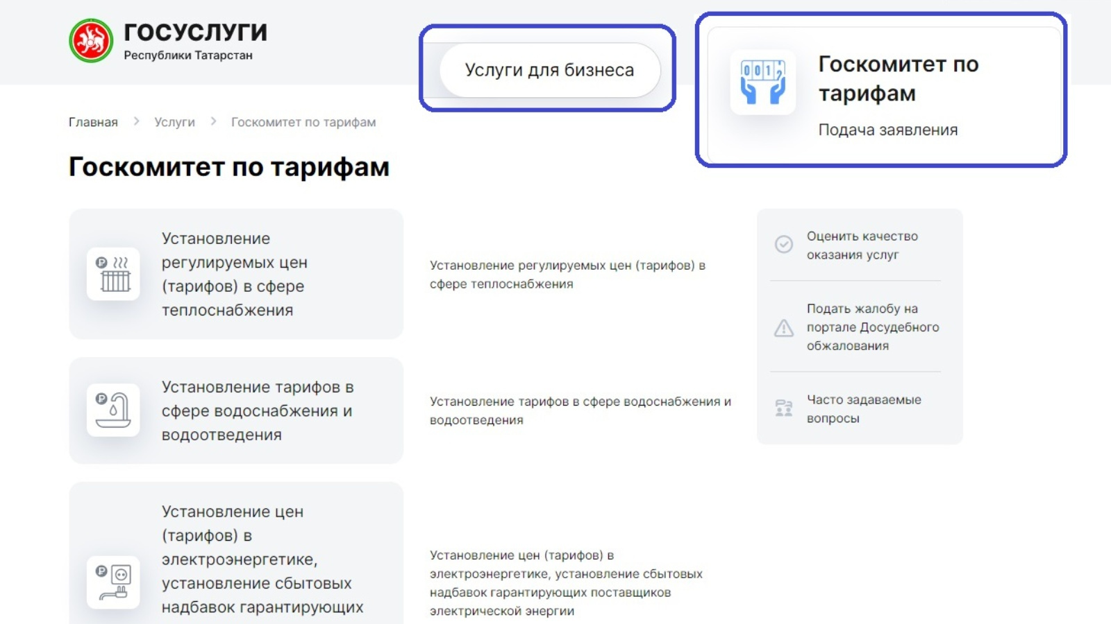 Госкомитет РТ по тарифам оказывает 13 государственных услуг в сфере тарифного регулирования.
