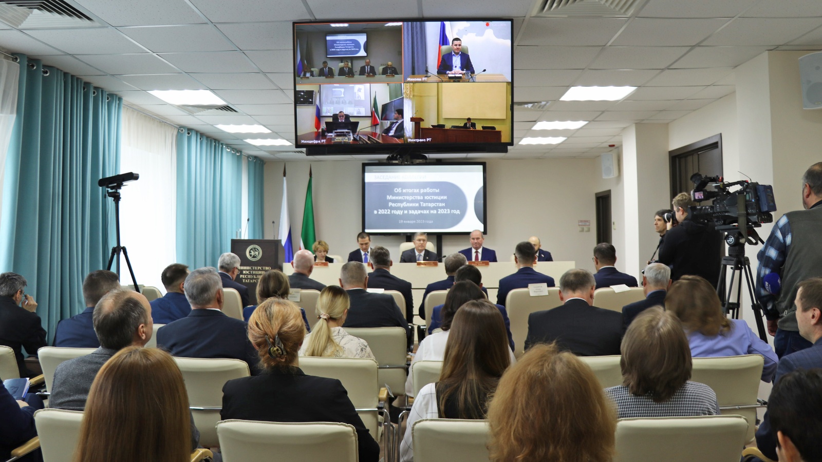 Сегодня состоялось итоговое заседание коллегии Министерства юстиции Республики Татарстан с участием первого заместителя Премьер-министра Республики Татарстан Рустама Нигматуллина.