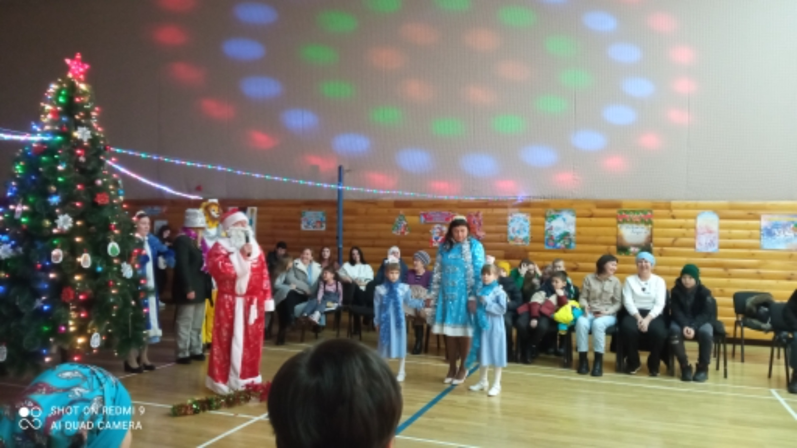 Работники культуры подготовили интересную и насыщенную программу праздничного вечера. Праздник начался с поздравления с Новым годом. А когда на радость всем пришли Дед Мороз и Снегурочка, началось настоящее веселье: новогодние песни и танцы Дедушка Мороз и Снегурочка провели очень много новогодних конкурсов, веселых игр.