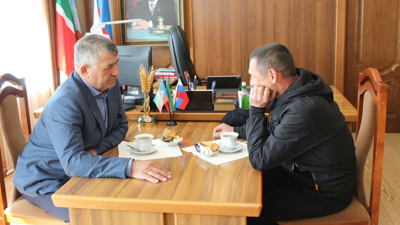 Глава района Камиль Гилманов встретился с нашим бойцом, который осенью в рамках частичной мобилизации был направлен для прохождения службы в зоне специальной военной операции и сейчас находиться в краткосрочном отпуске.