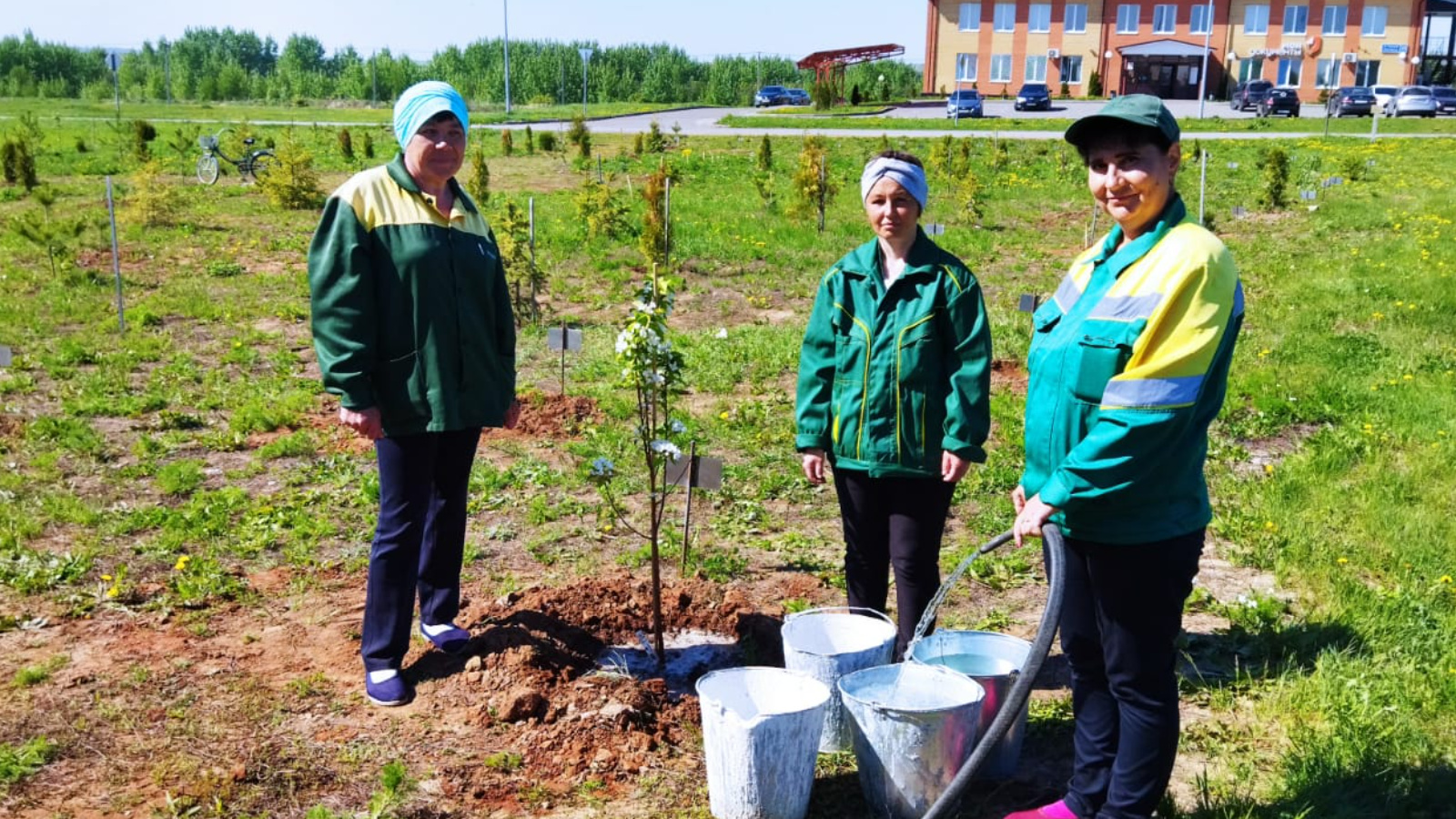 На территории поселка Богатые Сабы улица Тынычлык,после празднования 9 мая - Дня Победы были посажены деревья.