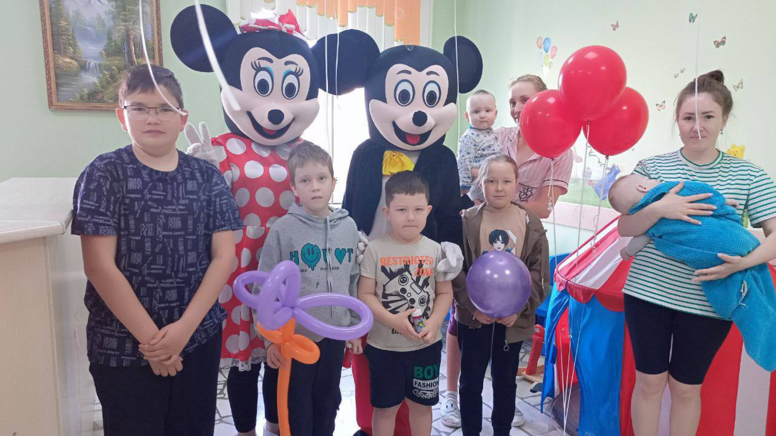 В подготовке праздника для детей огромна заслуга и руководства, и каждого врача, медсестры больницы, и всего коллектива. Мероприятие, которое уже несколько лет является для традиционным, в этом году решили еще больше расширить и также обогатить программу! С праздником маленьких пациентов поздравили их любимые герои мультфильма – Минни Маус и Микки Маус, также угостили вкусным тортом и соком!