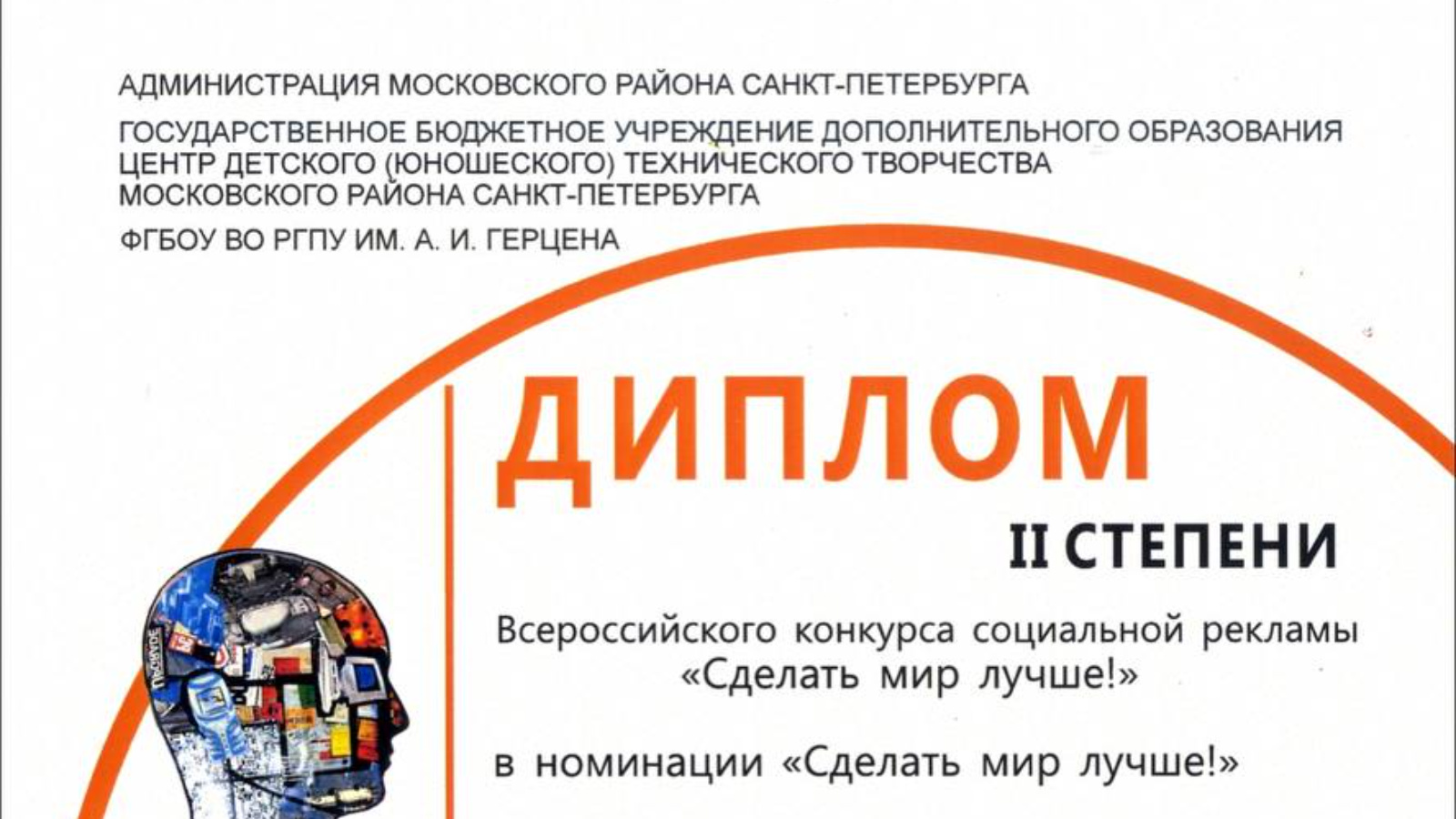 Прошел во 2 тур и получил Диплом II степени в категории "Перспектива":