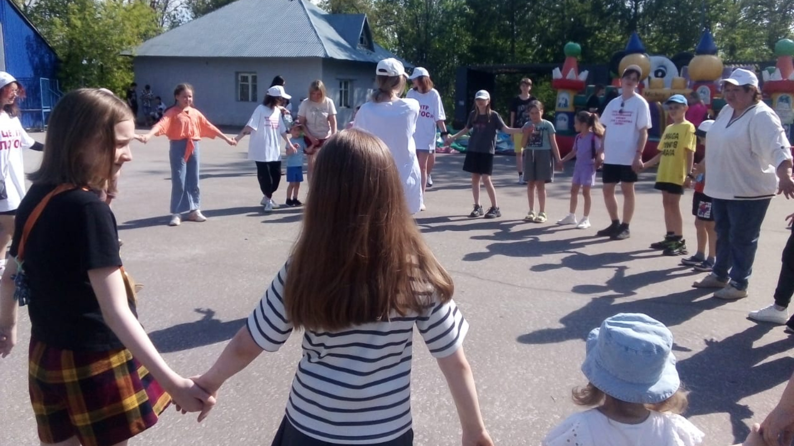 Волонтёры и педагог- психолог Диляра Муртазина провели с детьми в парке имени Горького мероприятие на тему «Возьмемся за руки друзья!».