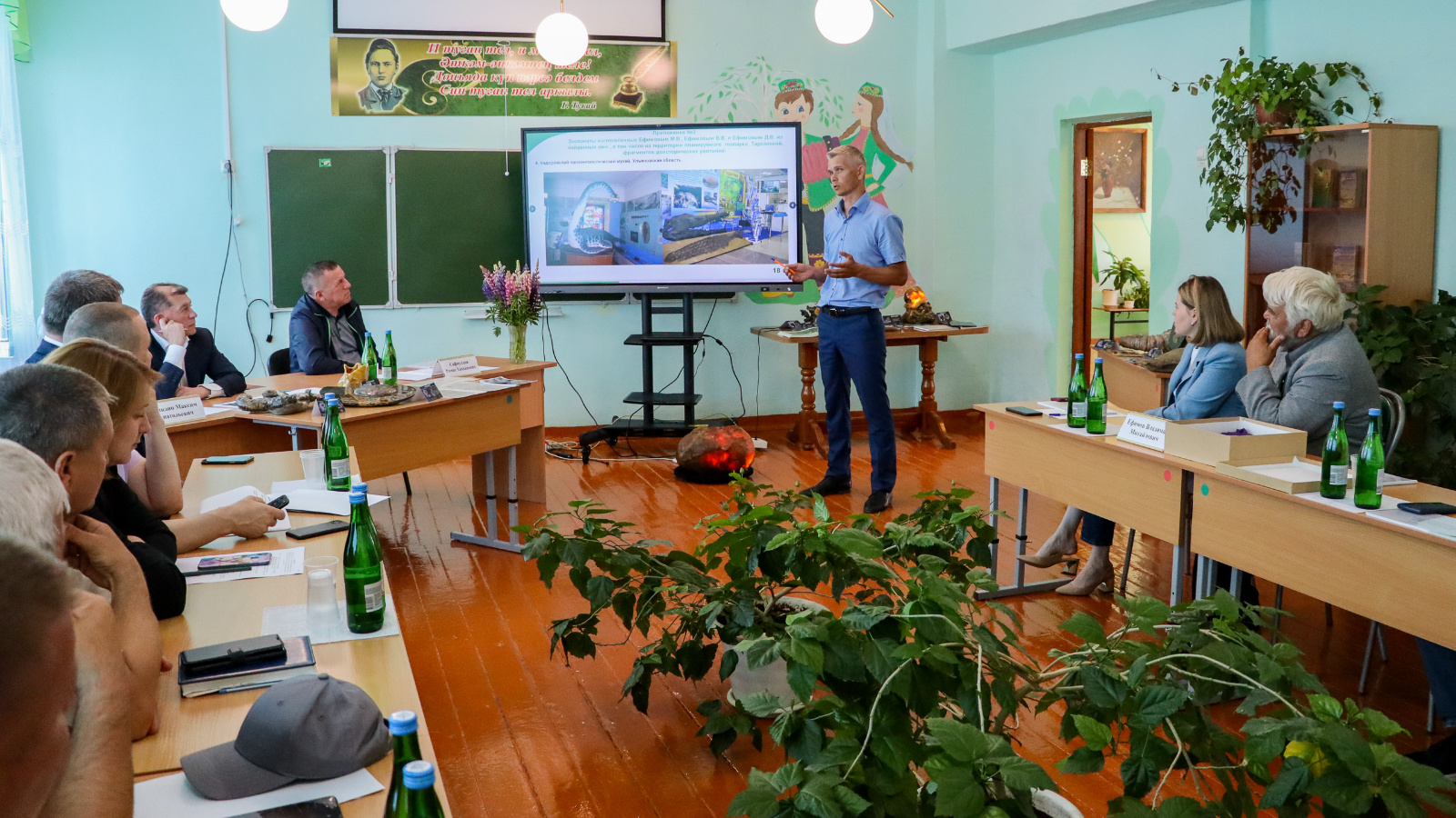 Вместе с Главой Тетюшского муниципального района Республики Татарстан Рамисом Хатыповичем Сафиулловым они посетили завод по производству минеральной воды «Тарханская», а затем в селе Большие Тарханы приняли участие в совещании на тему «О создании Геопарка на территории Тетюшского муниципального района». Участниками совещания стали Председатель Государственного комитета Республики Татарстан по туризму Сергей Евгеньевич Иванов, начальник Управления охраны окружающей среды Министерства экологии и природных ресурсов Республики Татарстан Альберт Анатольевич Шубин, директор ООО "Волжские воды-К" Тимур Генрихович Бердников, председатель Ульяновского отделения Всероссийского Палеонтологического общества, кандидат геолого-минералогических наук (кандидатская диссертация - «Позднеюрские и раннемеловые ихтиозавры Среднего Поволжья и Подмосковья») Владимир Михайлович Ефимов, его сыновья палео-реставраторы Денис и Владислав Ефимовы и другие приглашенные.