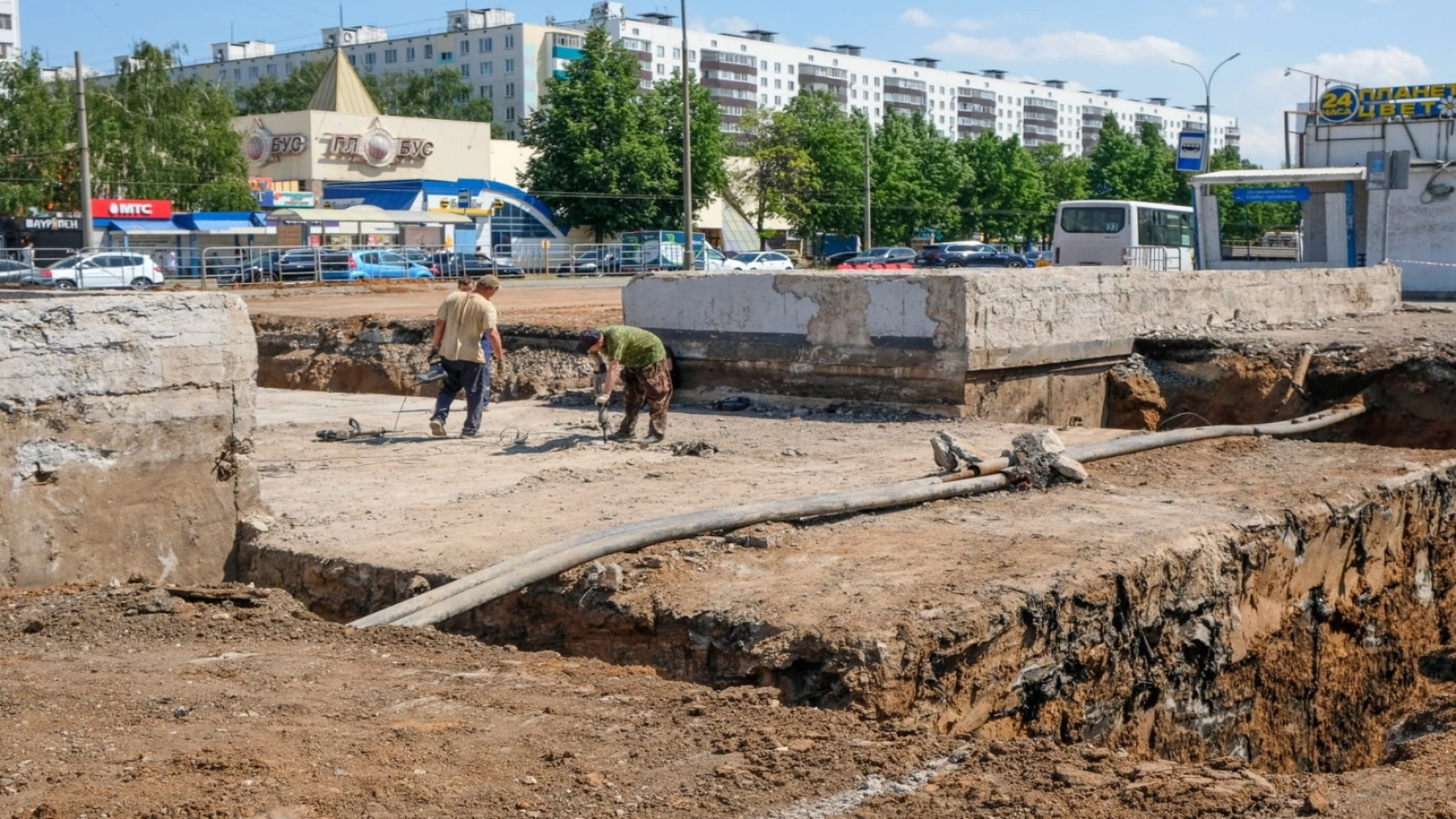 На сегодня дорожными службами выполнены подготовительные и земляные работы. Также ведутся мероприятия по устройству конструкции дорожной одежды, пешеходного тротуара, ремонту трамвайных путей, подземных пешеходных переходов с устройством гидроизоляции и сетей наружного освещения.
