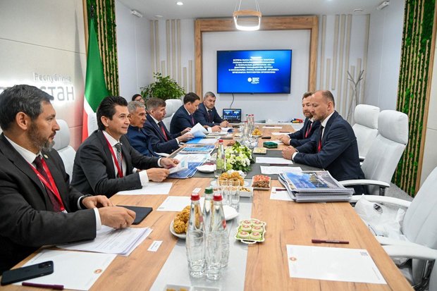 Раис Татарстана Рустам Минниханов встретился с генеральным директором «R1» Дмитрием Реуттом и основателем группы компаний «БРОЗЭКС» Вячеславом Брозовским на полях Петербургского международного экономического форума (ПМЭФ).