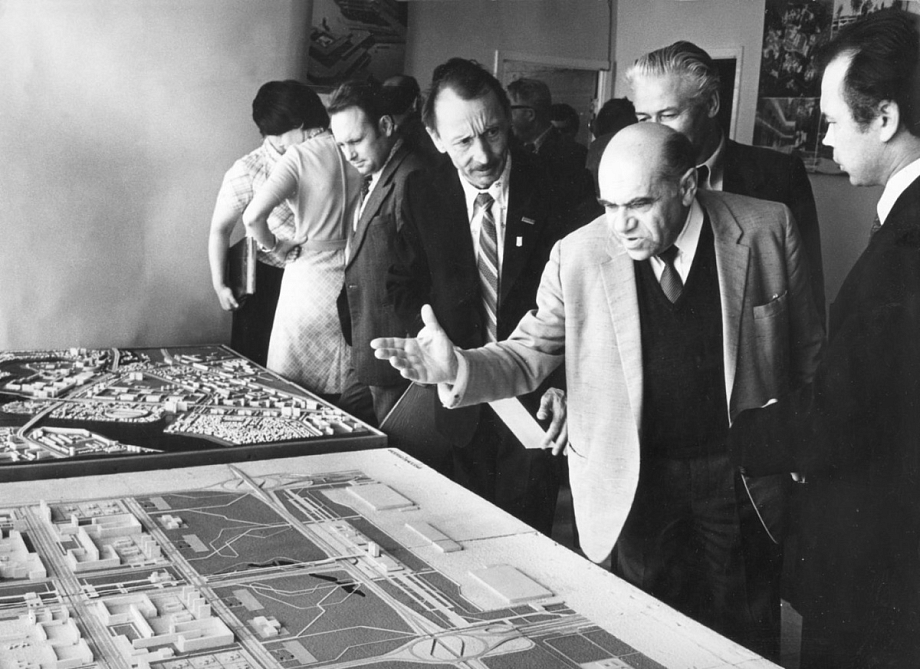 На фото – архитекторы, в том числе академик Борис Рубаненко, челнинские чиновники и рабочие группы на обсуждениях, объездах и у макетов будущего автограда. В архиве музея также сохранилась статья архитектора Юрия Наймарка, опубликованная в 1973 году в «Строительной газете». В ней проектировщик рассказал, каким хотели видеть Челны в те годы.