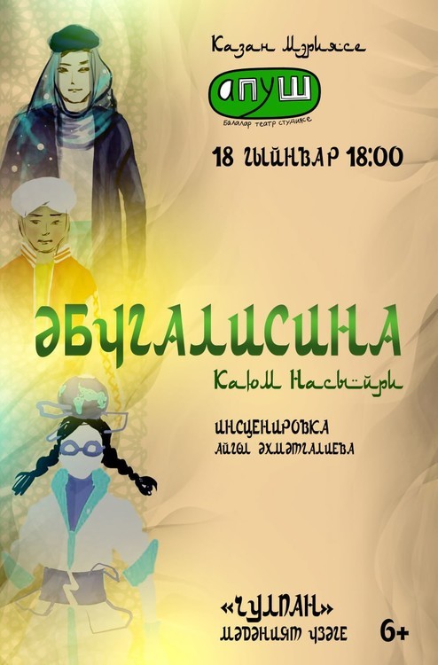 В ближайшую среду 18 января в 18:00 детская татарская театральная студия «Апуш», действующая в культурном центре «Чулпан», покажет свой первый спектакль. Зрителям впервые будет представлен мюзикл «Абугалисина» по произведению известного просветителя, ученого, педагога, писателя, этнографа Каюма Насыри .