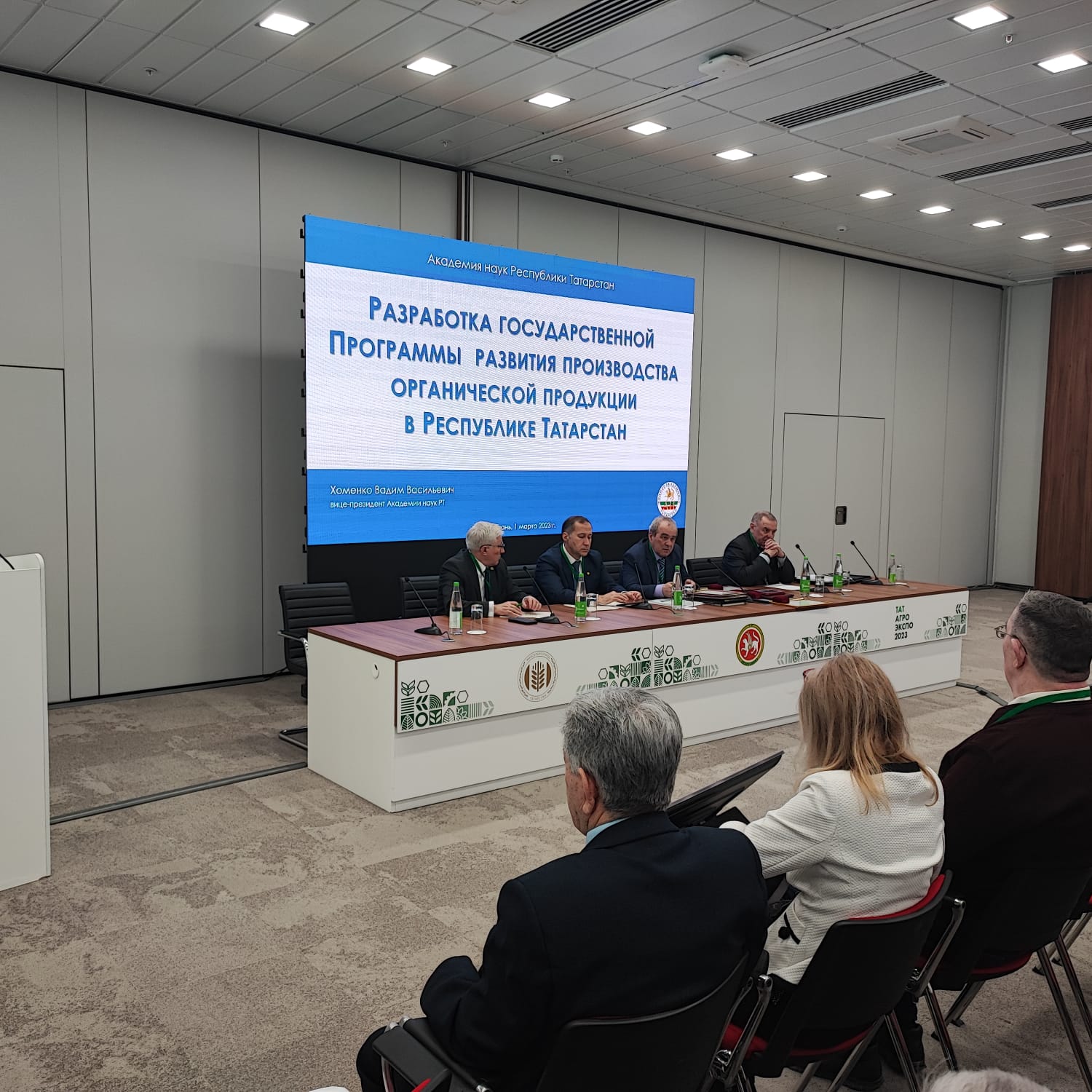 На круглом столе, проведенном в рамках итоговой коллегии, выступил вице-президент Академии наук Республики Татарстан, доктор экономических наук Вадим Хоменко с докладом «Разработка государственной программы развития органической продукции в Республике Татарстан». Мероприятие прошло в «Казань Экспо».