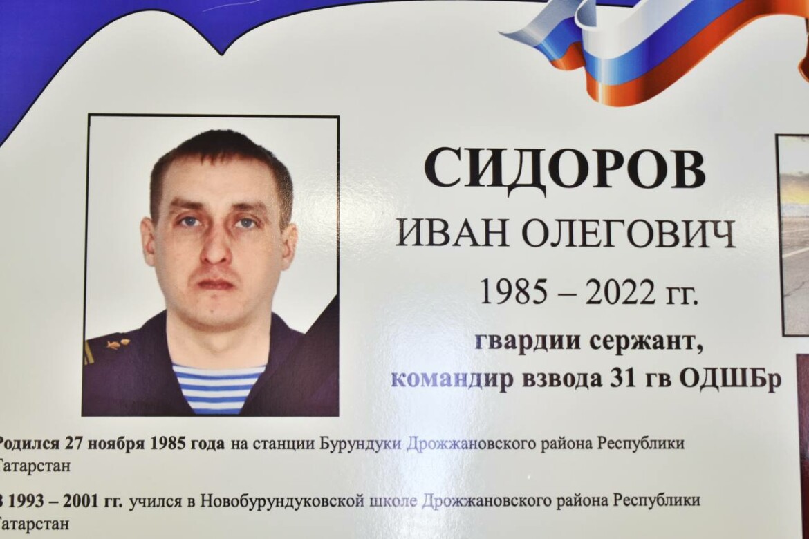 Иван Сидоров окончил школу в 2003 году и вскоре пополнил ряды Вооруженных сил. Он принимал участие в освобождении Крыма в 2014 году и в военной операции в Сирии. Иван героически погиб в феврале 2022 года в Киевской области Украины при выполнении боевой задачи. На церемонию в школе пришли его сестра и супруга. Сын Ивана сейчас учится в Суворовском училище, у него такой же твердый характер, как у папы.