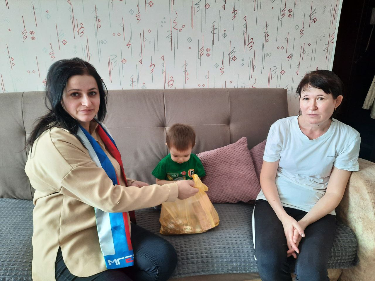 Молодогвардейцы пообщались с супругой мобилизованного, вручили продуктовый набор и подарили сладости детям.