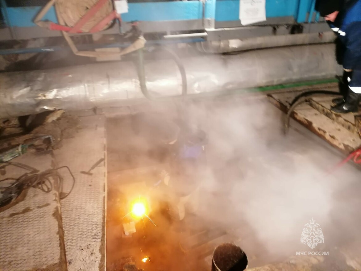 На месте аварии проводятся восстановительные работы. Бригада вырезала часть металлической трубы коллектора, в настоящее время проводятся сварочные работы. Ориентировочное время восстановления теплоснабжения – сегодня в полночь.