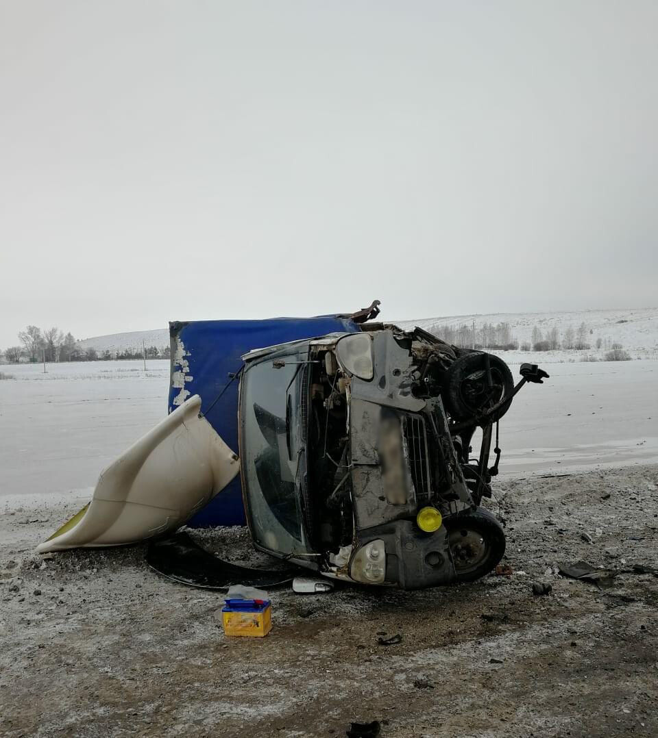 По их информации, столкнулись «ГАЗель» и легковушка Hyundai. От удара отечественный автомобиль опрокинулся на бок и вылетел с дороги, а иномарка лишилась капота.