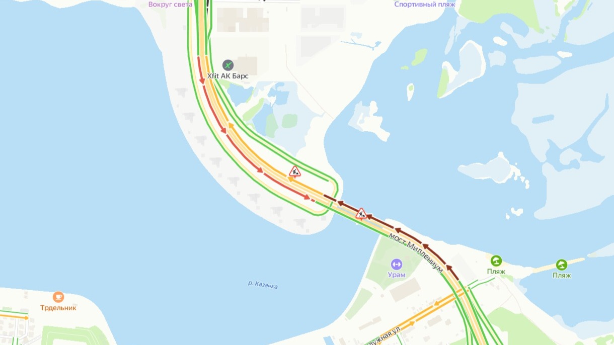 На кадрах, присланных в редакцию, можно заметить, что транспортные средства встали на среднем ряду моста. Они заняли линию движения в сторону улицы Сибгата Хакима.