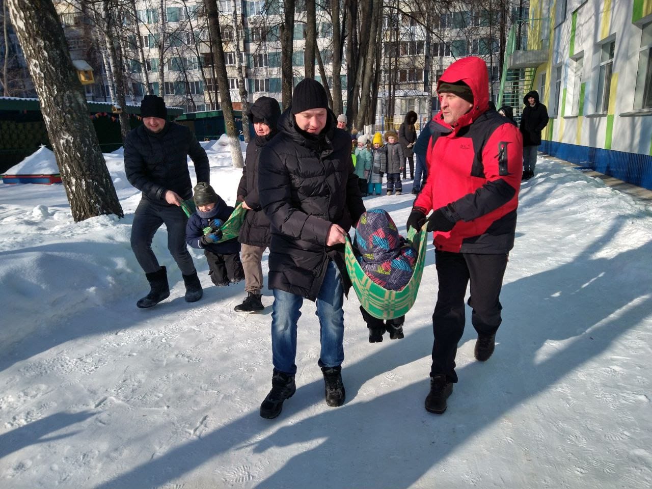 Самые крепкие, веселые, сильные папы и самые дружные ребята из подготовительных групп собрались, чтобы проявить сноровку и ловкость в военно-спортивной игре "Зарница".