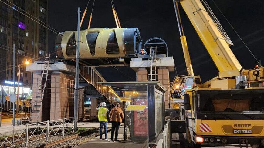 Надземный переход привозили по частям и устанавливали фрагментами. Там есть лифт с теплыми шахтами и антивандальной конструкцией.