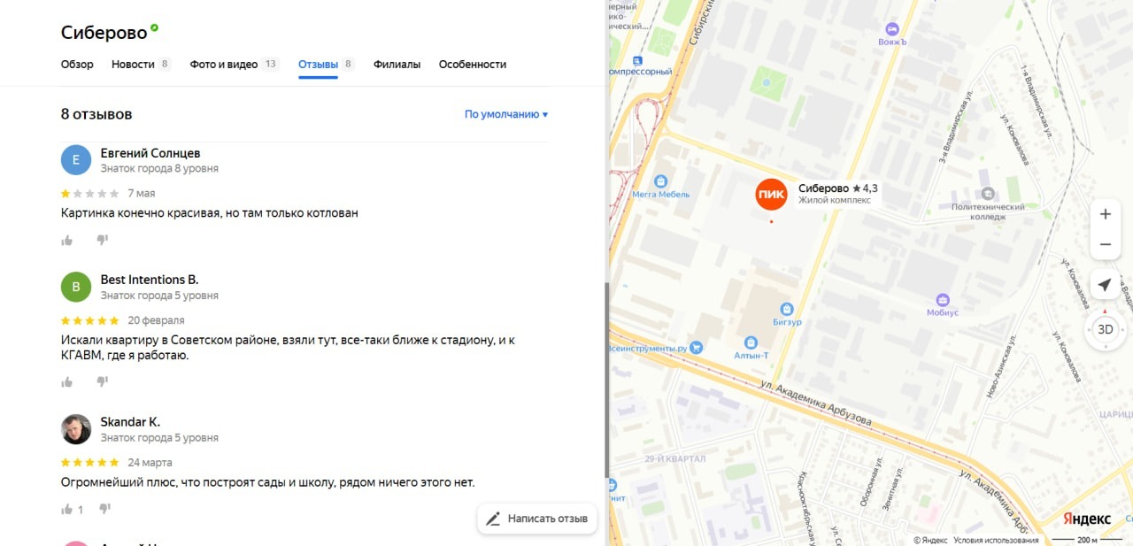 На сервисе «Яндекс.Карты» исчезают негативные отзывы на строящиеся в Казани жилые комплексы от московского застройщика «ПИК».