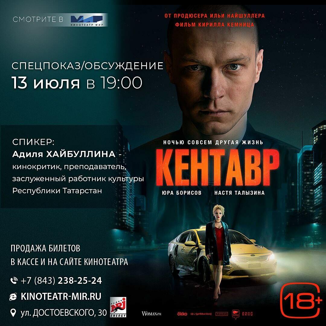 13 июля в 19:00 в кинотеатре «Мир» состоится специальный показ экшен-триллера «Кентавр» (16+). В этот же день фильм выходит в российский прокат.