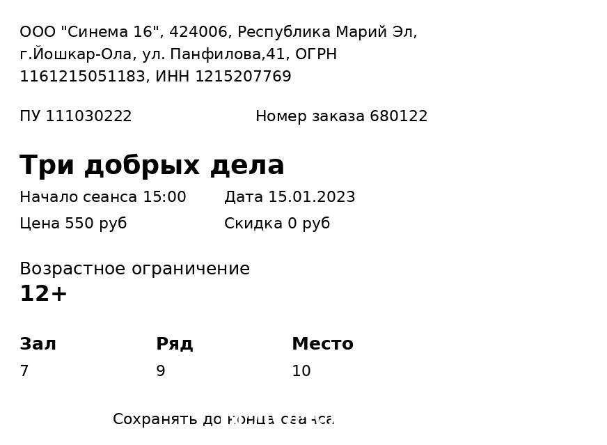 Довольство собой длилось равно до того момента, пока не открыли билеты, полученные по электронной почте. Согласно им, нам предстояло насладится неведомым киношедевром «Три добрых дела». Немого успокоила информация на сайте кинотеатра: «ВАЖНО! Первый показ – «Аватар: Путь воды», затем показа фильма «Три добрых дела». Бесплатное предсеансное обслуживание ленты «Аватар: Путь воды» (продолжительность 3 часа 12 мин.). Перерыв между предсеансовым обслуживанием и фильмом (7 мин.). Фильм«Три добрых дела» (продолжительность 6 мин.).