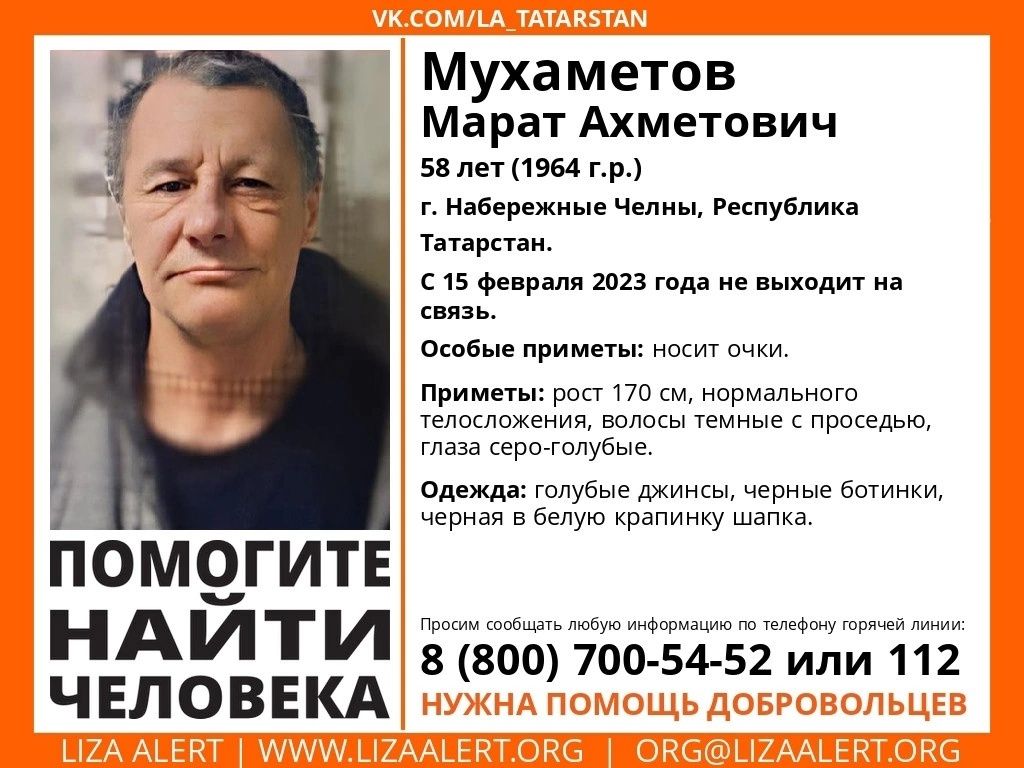 С заявлением в отдел полиции обратилась дочь пропавшего жителя Набережных Челнов. Она сообщила, что уже с 15 февраля ничего неизвестно о судьбе ее отца. 58-летний Марат Ахметович Мухаметов проживает в 49-м комплексе, он вышел из дома и до настоящего времени не появлялся.