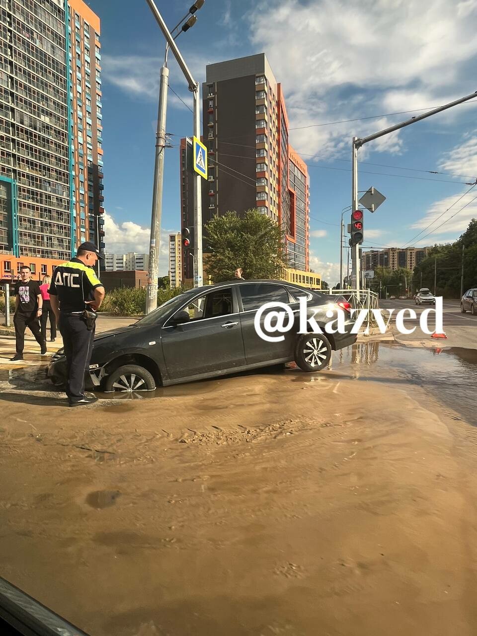 В столице Татарстана автомобиль застрял в огромной яме с водой. Об этом сообщают подписчики Telegram-канала «ТАТМЕДИА».