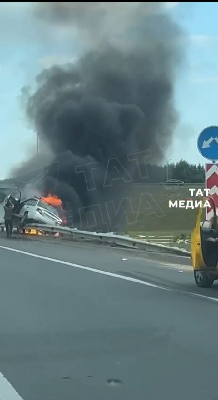 На выезде из Казани в сторону Лаишево загорелась машина.