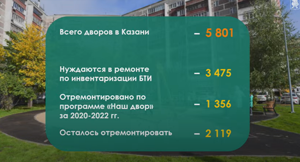 Саляхутдинов пояснил, что перечень дворов был составлен на основании голосования. В Кировском и Московском районах обновления получат 136 домов, в Вахитовском и Приволжском районах – 125, в Авиастроительном и Ново-Савиновском – 130, в Советском - 91 дом.