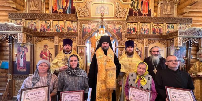 После службы епископ Мефодий поблагодарил верующих за молитвы, поздравил с воскресным днём и вручил церковные награды.