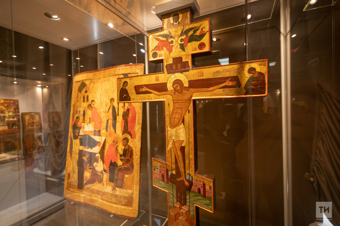 Большой деревянный храмовый крест-распятие с ангелом-хранителем, расписанный темперой и сусальным золотом, датируется XIX веком, принадлежит старообрядческой общине старопоморского согласия и впервые экспонируется в Музее ИЗО РТ. Рядом одна из самых древних реликвий иконописи на казанской земле — образ «Рождество Богородицы» конца XV — начала XVI века, созданный еще до Раскола, но сохраненный именно старообрядцами. Он также экспонируемая впервые. Эти и другие раритеты иконописи смогут теперь увидеть посетители ГМИИ Татарстана, где в интерьерах основной постоянной экспозиции образцов древнерусской живописи, преимущественно из храмов Свияжска, открылась выставка «Хранители древней иконы».
