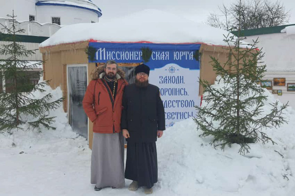 Общение с духовенством проходит за чаепитием в миссионерской юрте, установленной у входа в обитель, на территории проведения Рождественского фестиваля ледовых и снежных скульптур «Лёд и свет». Гостей, пожелавших воочию увидеть многометровые фигуры из прессованного снега, знакомят с евангельской историей, приглашают помолиться в храме, угощают сладостями.
