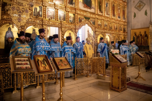 На малом входе иеромонах Силуан (Цапин) был удостоен права ношения наперсного креста золотого цвета. По запричастном стихе проповедь произнёс иерей Константин Корепанов. После отпуста Литургии было совершено молебное пение перед чествуемым образом Божией Матери.