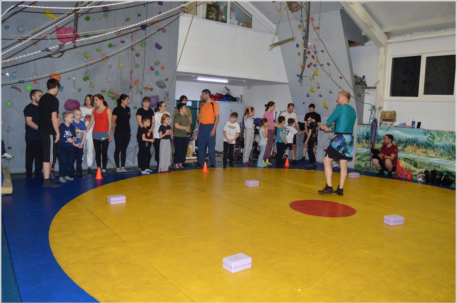 В веселых стартах участвовали воспитанники клуба и их родители. Все собравшиеся разделились на три команды — «Дружба», «Победа» и «Бублики». Кроме названия команды придумали еще девиз и речевку.
