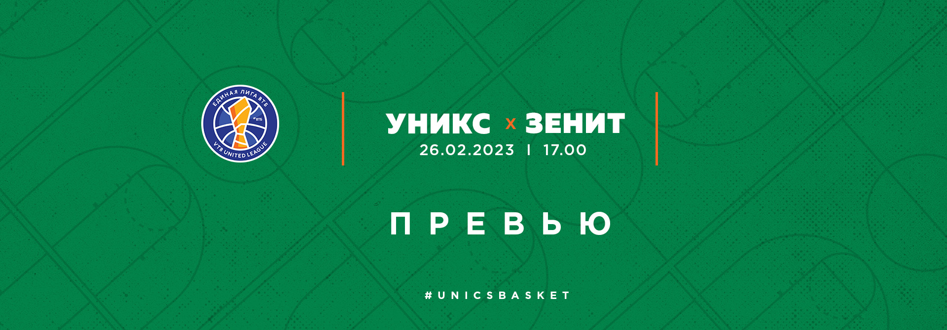 УНИКС продолжает серию матчей с клубами Топ-3. В воскресенье, 23 февраля, казанцы примут действующего победителя Единой Лиги ВТБ – «Зенит» из Санкт-Петербурга. Сине-бело-голубые замыкают тройку сильнейших команд таблицы с показателями 18 выигрышей и 8 проигрышей. Наши парни располагаются на 2-м месте, опережая конкурента на 5 побед.