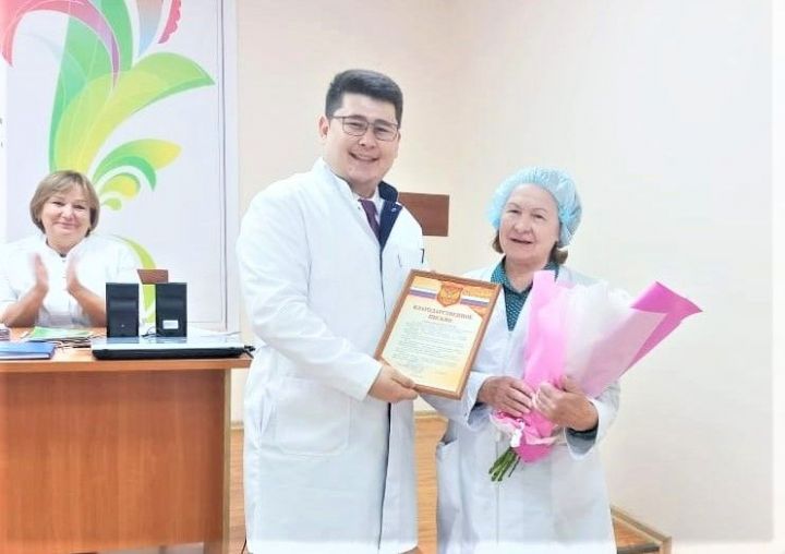 Благодарственное письмо за многолетний плодотворный труд в системе здравоохранения и цветы вручил юбиляру главный врач Бавлинской центральной районной больницы Азат Гайсин. Об этом сообщает пресс-служба больницы.