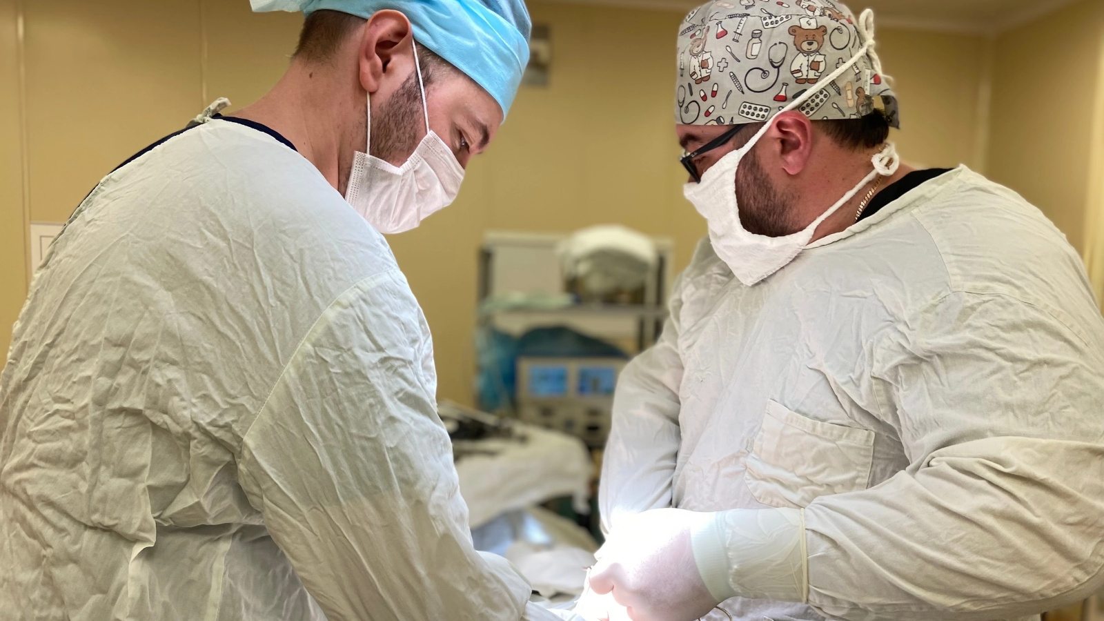 Операцию проводили команда хирургического отделения (Мифтахутдинов Н.Н.) и команда отделения реанимации и интенсивной терапии (Новоселова Е.Н.) совместно с командой операционных медицинских сестер.