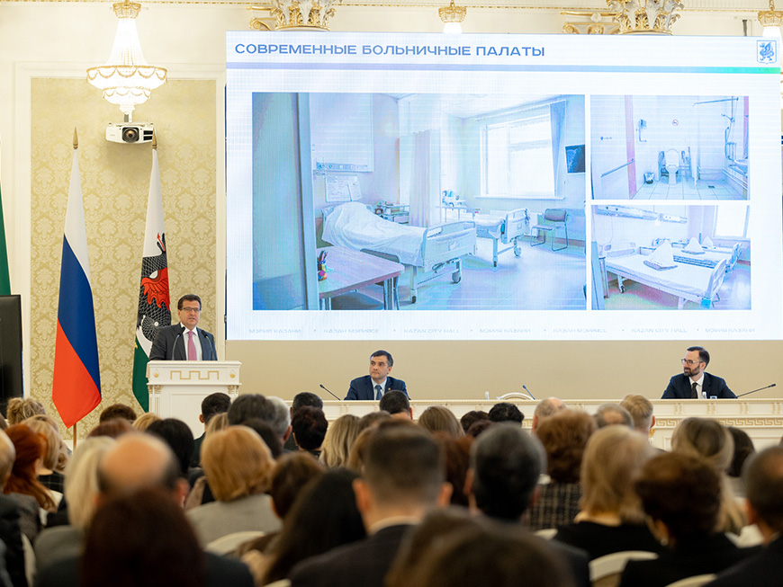 (Город Казань KZN.RU, 18 апреля, Юлия Летникова). За шесть лет в Казани при поддержке правительства республики капитально отремонтировали 67 объектов здравоохранения и построили 9 объектов. В этом году обновляется и возводится 11 зданий медицинских учреждений. Модернизацию и развитие инфраструктуры, медицинские классы и новые проекты обсудили сегодня в Ратуше на итоговой коллегии Управления здравоохранения по Казани МЗ РТ. «Благодаря нашим общим усилиям с 2010 года рост населения Казани составил более 132 тысяч человек. Это цифра красноречивее всех слов говорит об эффективности совместной работы», – сказал Ильсур Метшин в своем выступлении.Перед началом заседания участникам презентовали медицинские проекты, которые реализуются в Казани. Одним из них стал проект, в рамках которого беременная женщина может самостоятельно мониторить сердцебиение плода в домашних условиях. Для этого ей выдается специальный прибор измерения. Полученные данные передаются в сервис «Связь». Заместитель министра здравоохранения РТ – начальник Управления здравоохранения Казани Владимир Жаворонков рассказал, что в 2022 году сервисом воспользовались свыше 10 тысяч беременных женщин, что позволило значительно снизить количество тяжелых осложнений и избежать материнские потери. Также «Связью» пользуются казанцы с сердечно-сосудистыми заболеваниями. Для них в прошлом году были введены конверты мониторинга.