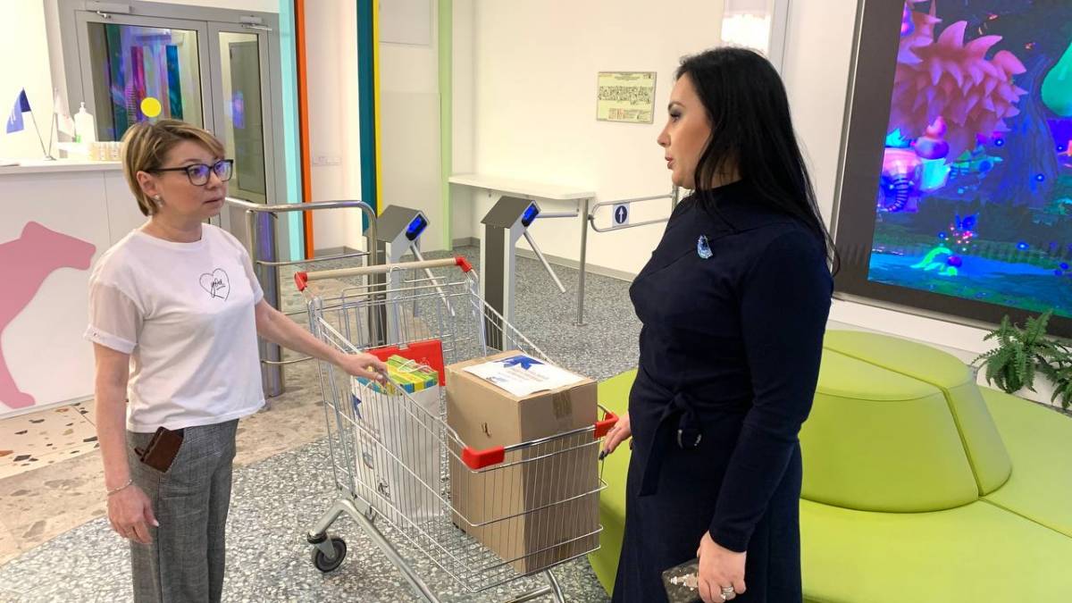 Сотрудники приемной передали в Центр подгузники, бытовую химию и сладости, и обсудили варианты дальнейшего сотрудничества. Как устроены быт, отдых и лечение детей рассказала активистам Гульнара Залялютдинова, руководитель Благотворительного Фонда «Город Добрых Людей» – партнер по федеральному проекту «Единые».