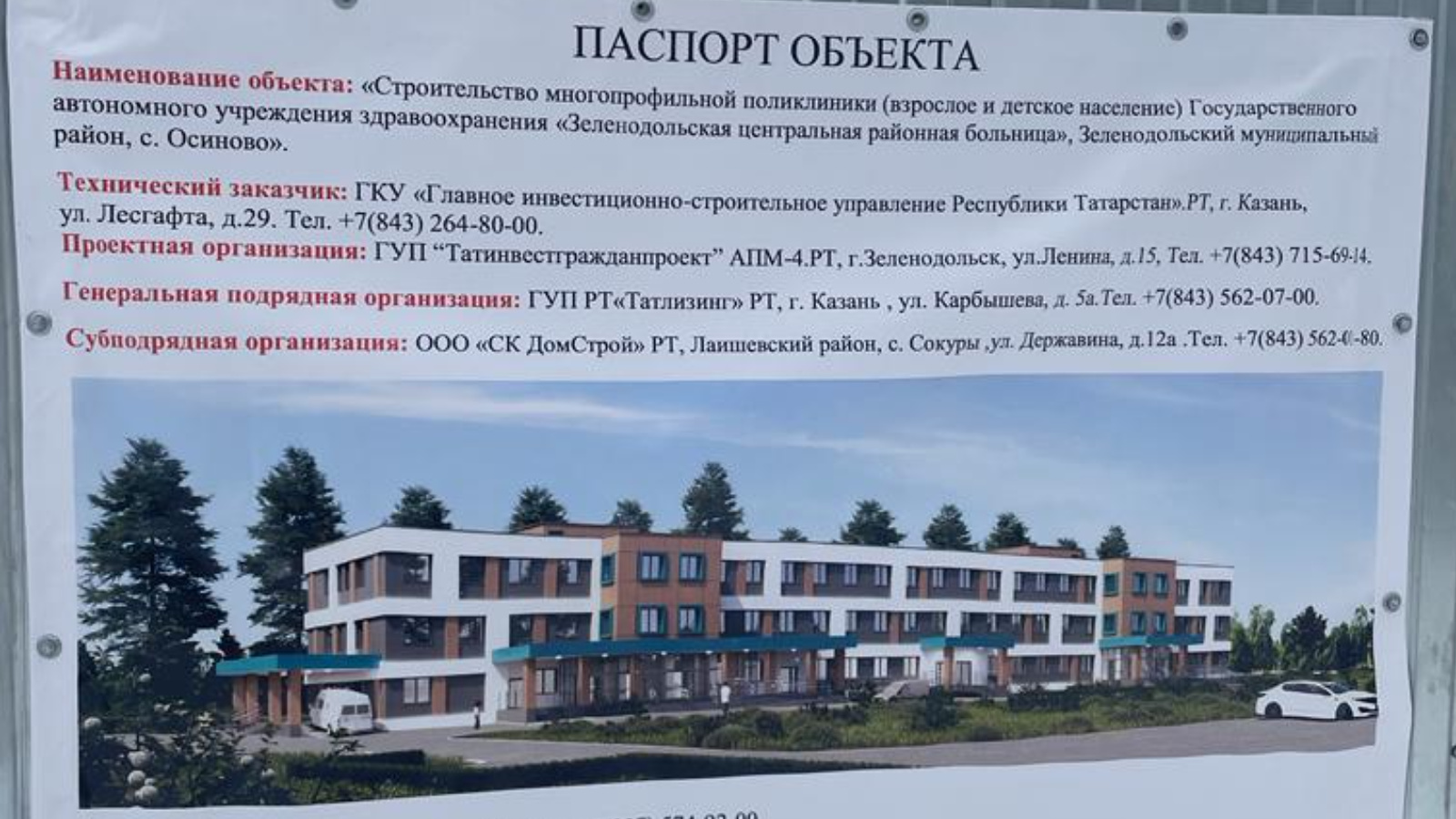 Рабочая группа Министерства здравоохранения Республики Татарстан посетила Зеленодольский район, с. Осиново, где по программе модернизации первичного звена здравоохранения нацпроекта «Здравоохранение» с марта 2022 года строится многопрофильная поликлиника. Там будет вестись прием и взрослого, и детского населения. Трехэтажная амбулатория рассчитана на 400 посещений в смену.