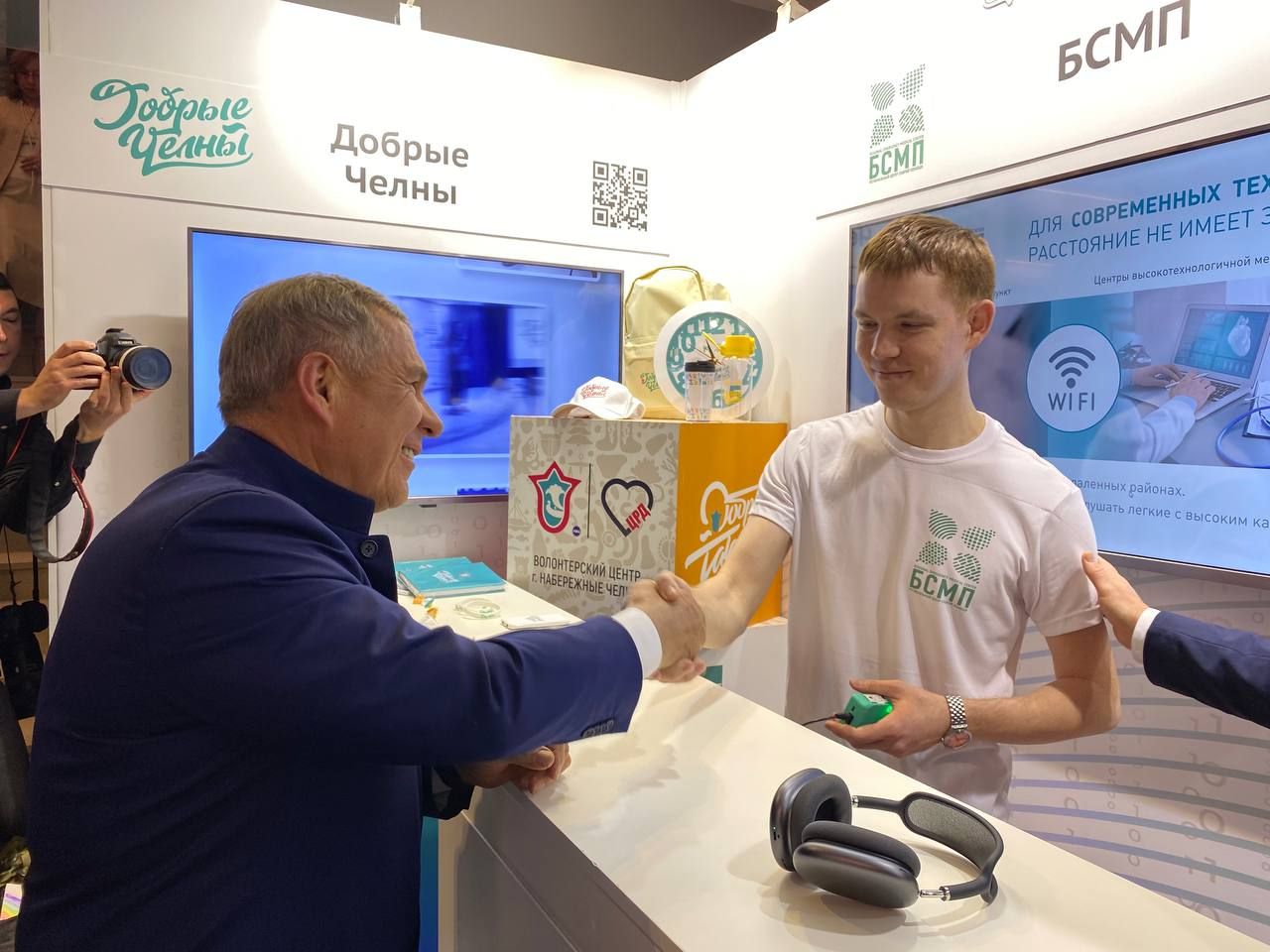 После презентации новинки Рустам Минниханов надел наушники и послушал сердечный ритм врача.