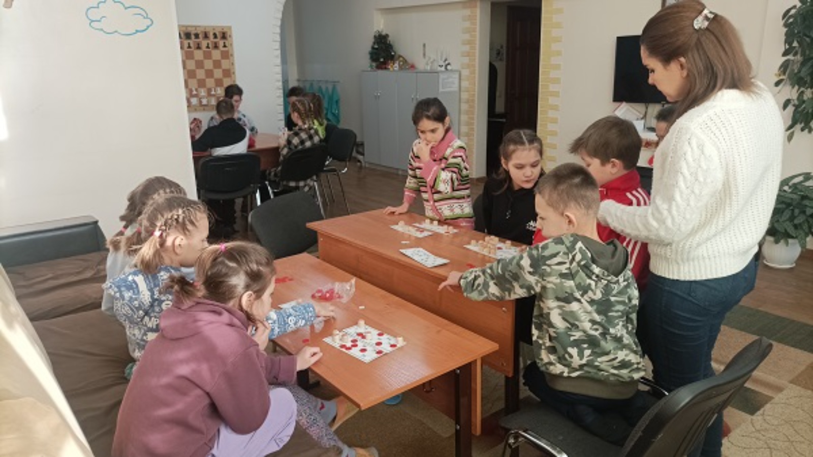 Ребята не тратили время зря. Социальные педагоги Лилия Хисамова и Клавдия Камашева подготовили для них разные занятия. Так, дети познакомились с новой для них игрой «UNO». Также играли в настольную игру «Лото», тренируя при этом память, внимание и наблюдательность.