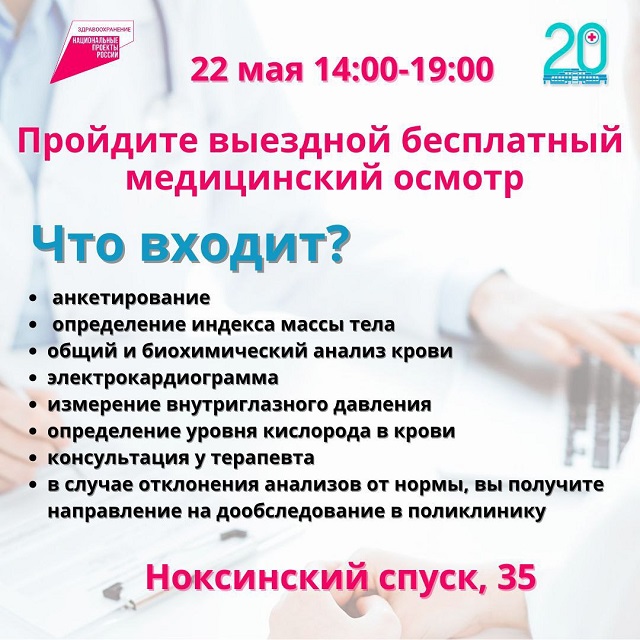 В среду 22 мая для жителей Казани в рамках нацпроекта «Здравоохранение» организуют бесплатный выездной медицинский осмотр, информирует пресс-служба Минздрава РТ.