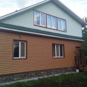 Стены из ЛИСТВЕННИЦЫ, снаружи утеплены не горючим плотным технониколем толщиной 5см и покрыты материалом ветровлагозащиты, через воздушную прослойку металлосайдинг для защиты от дождя и ветра. Внутри дома стены через 5ти сантиметровую воздушную прослойку покрыты гипсокартоном.