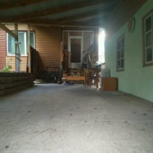 Двор аккуратно и ровно залит бетоном, весь под навесом, для защиты от снега и дождя.